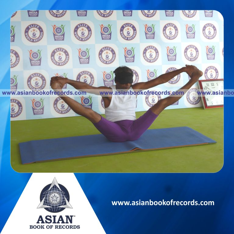 The Longest Time Holding Kakasana Yoga Pose Blindfolded by an Individual (Male) was achieved by Dr.V.Gunasekaran, Founder-Maragatham Yogalayam at Udumalpet, Tirupur District, Tamil Nadu, India on September 22, 2019. It lasted for 3 Minutes and 5 Seconds.