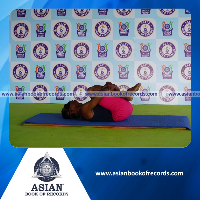 The Longest Time Holding Pavanamuktasana Yoga Pose Blindfolded by an Individual (Male) was achieved by Dr.V.Gunasekaran, Founder-Maragatham Yogalayam at Udumalpet, Tirupur District, Tamil Nadu, India on September 27, 2019. It lasted for 4 Minutes and 4 Seconds.