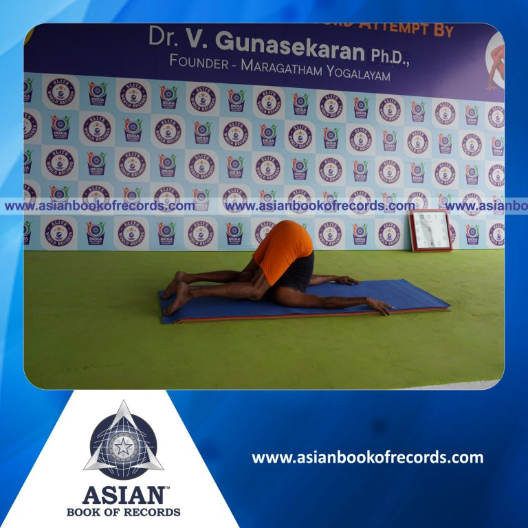 The Longest Time Holding Sivalingasana Yoga Pose by an Individual (Male) was achieved by Dr.V.Gunasekaran, Founder-Maragatham Yogalayam at Udumalpet, Tirupur District, Tamil Nadu, India on September 26, 2019. It lasted for 3 Minutes and 3 Seconds.