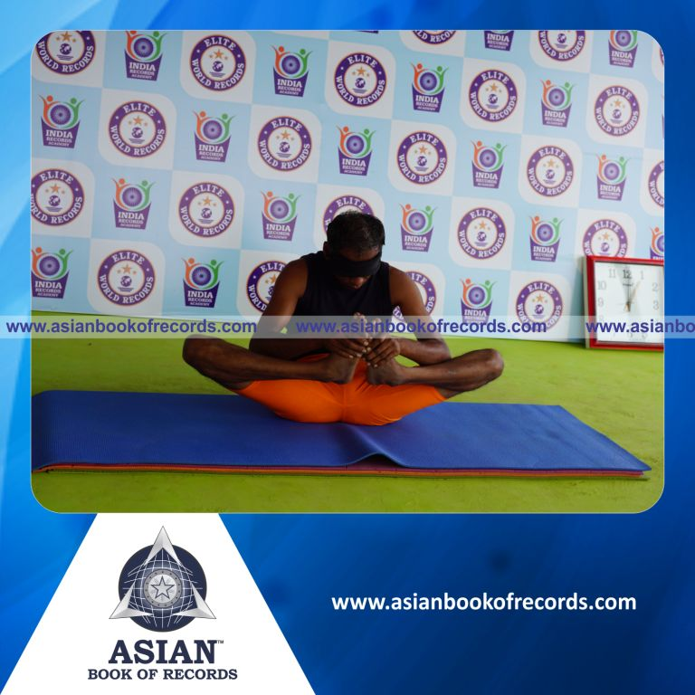 The Longest Time Holding Skandasana Yoga Pose Blindfolded by an Individual (Male) was achieved by Dr.V.Gunasekaran, Founder-Maragatham Yogalayam at Udumalpet, Tirupur District, Tamil Nadu, India on September 26, 2019. It lasted for 3 Minutes and 2 Seconds.