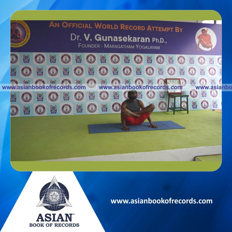 The Longest Time Holding Thulangasana Yoga Pose Blindfolded by an Individual (Male) was achieved by Dr.V.Gunasekaran, Founder-Maragatham Yogalayam at Udumalpet, Tirupur District, Tamil Nadu, India on September 25, 2019. It lasted for 5 Minutes and 3 Seconds.