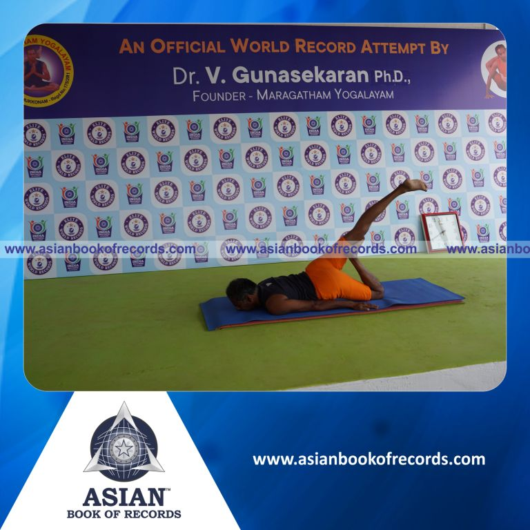 The Longest Time Holding Vama Janu Salabhasana Yoga Pose by an Individual (Male) was achieved by Dr.V.Gunasekaran, Founder-Maragatham Yogalayam at Udumalpet, Tirupur District, Tamil Nadu, India on September 26, 2019. It lasted for 3 Minutes and 3 Seconds.