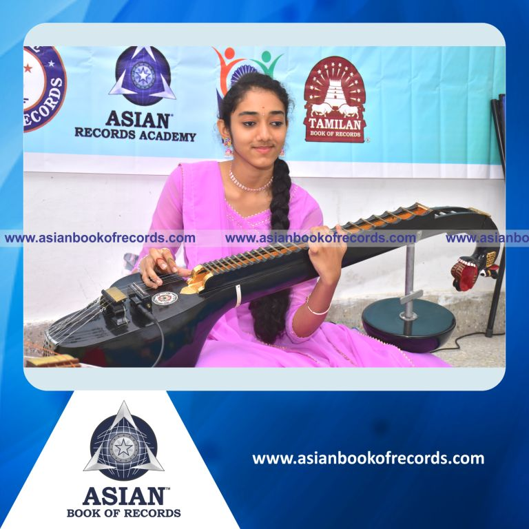 The Longest Veena Concert by an Individual (Minor-Female) was achieved by Shrinidhi.R, Grade XI A, Sree Narayana Mission Senior Secondary School in Chennai District, Tamil Nadu, India on October 3, 2023. It lasted for 12 hours.