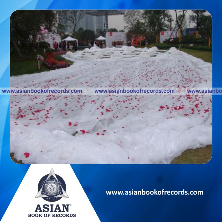 The Longest Wedding Dress was achieved by Hongda Century Jincheng, Chengdu, Sichuan, China on October 30, 2011. It measured 13405.51 feet in length.