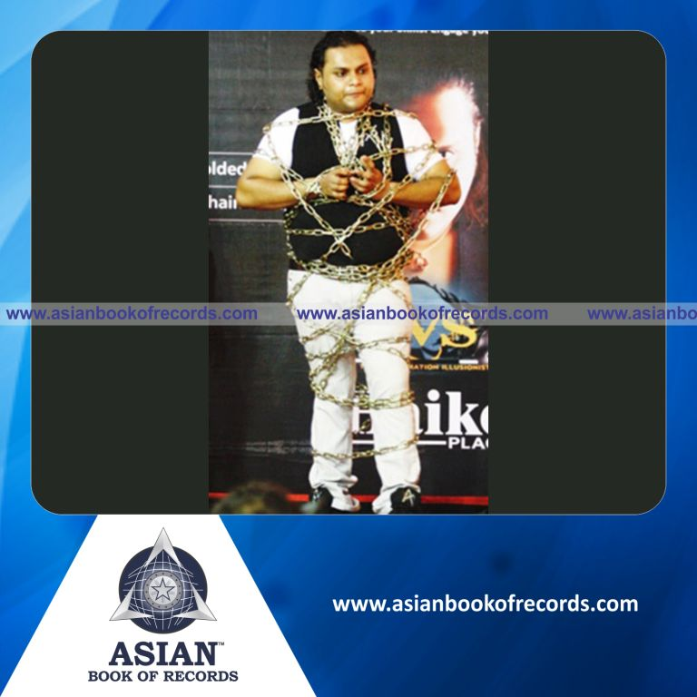 The Shortest Time to Unlock 100 Feet Iron Chain by an Individual (Male) was achieved by Amey Vinakumar Sarang, Mumbai, Maharashtra, India on May 19, 2012. It clocked to 42 seconds.