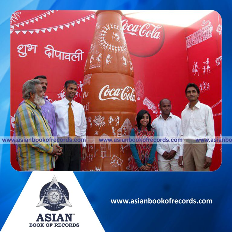 The Tallest Terracotta Coca-Cola Bottle Replica made by an Individual (Male) was achieved by Om Prakash Galav, Delhi, India on October 28, 2010. It measured 11 feet in height.